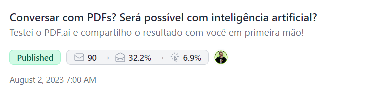 No dia 2 de agosto, notei que tinha um contato a menos. Alguém havia se desinscrito, e isso se mostrou uma situação providencial. Essa ocorrência me permitiu compreender melhor o funcionamento da ferramenta em casos como esse, o que gerou diversas ideias para testes futuros. Decidi que no dia seguinte incluiria mais pessoas à lista. O conteúdo do segundo dia abordou o experimento que realizei com uma inteligência artificial que possibilita a busca em arquivos PDF. O vídeo já está disponível em meu canal no YouTube, embora ainda não tenha sido publicado. Resolvi manter esse conteúdo exclusivo para os assinantes da newsletter, ou seja, para você.